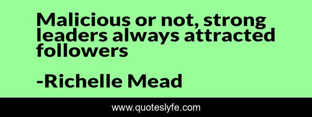 This page presents the quote "Malicious or not, strong leaders always attracted followers". Author of this quote is Richelle Mead. This quote is about vampires, leadership, vampire-academy, frostbite, vampire-academy-series, richelle-mead,.