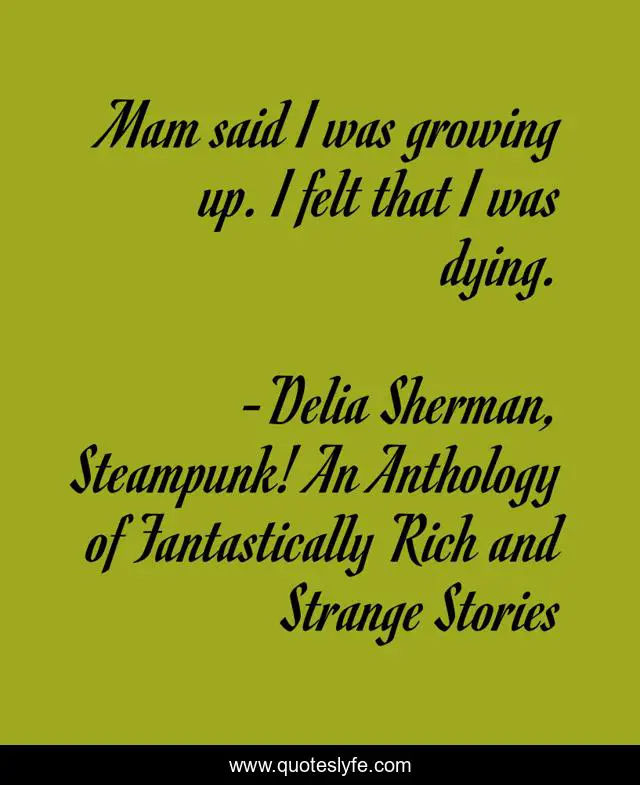 This page presents the quote "Mam said I was growing up. I felt that I was dying.". Author of this quote is Delia Sherman, Steampunk! An Anthology of Fantastically Rich and Strange Stories. This quote is about childhood, growing-up,.