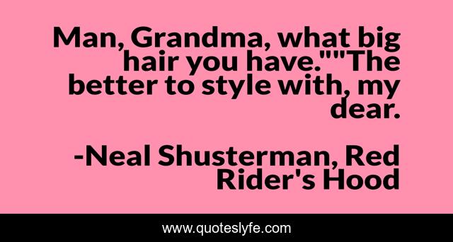 "Neal Shusterman, Red Rider's Hood Quotes." Quoteslyfe.com, 2025. Tue. 09 Dec. 2025. <https://www.quoteslyfe.com/quote/Man-Grandma-what-big-hair-you-have-247943>.