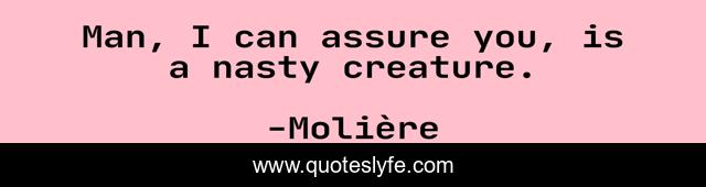 This page presents the quote "Man, I can assure you, is a nasty creature.". Author of this quote is Molière. This quote is about mankind, nastiness,.