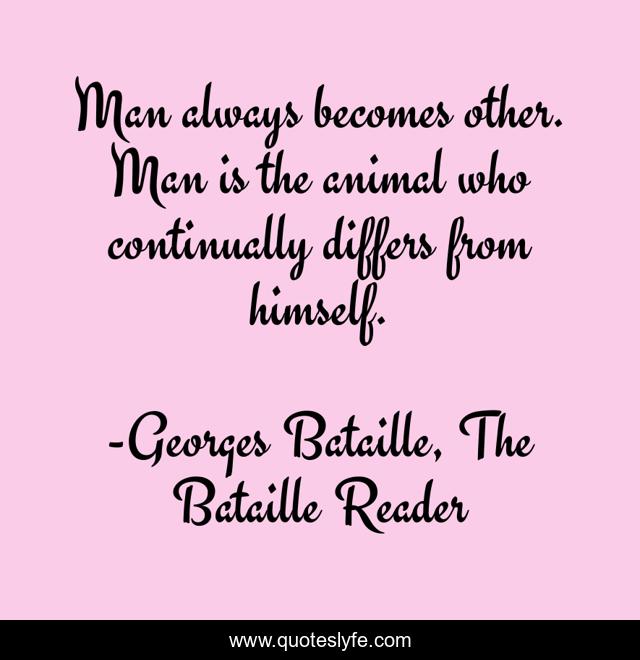 "Georges Bataille, The Bataille Reader Quotes." Quoteslyfe.com, 2025. Fri. 05 Dec. 2025. <https://www.quoteslyfe.com/quote/Man-always-becomes-other-Man-is-the-162431>.