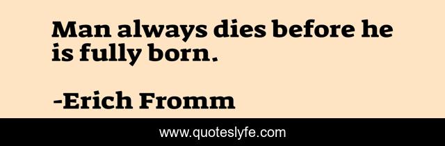 This page presents the quote "Man always dies before he is fully born.". Author of this quote is Erich Fromm. This quote is about always, man, born,.