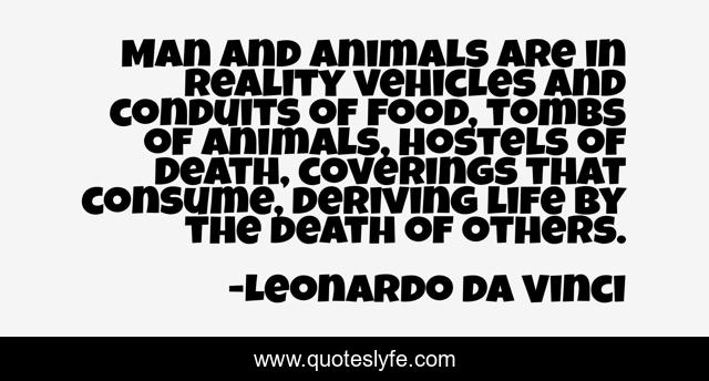 This page presents the quote "Man and animals are in reality vehicles and conduits of food, tombs of animals, hostels of Death, coverings that consume, deriving life by the death of others.". Author of this quote is Leonardo da Vinci. This quote is about food, life, man,.