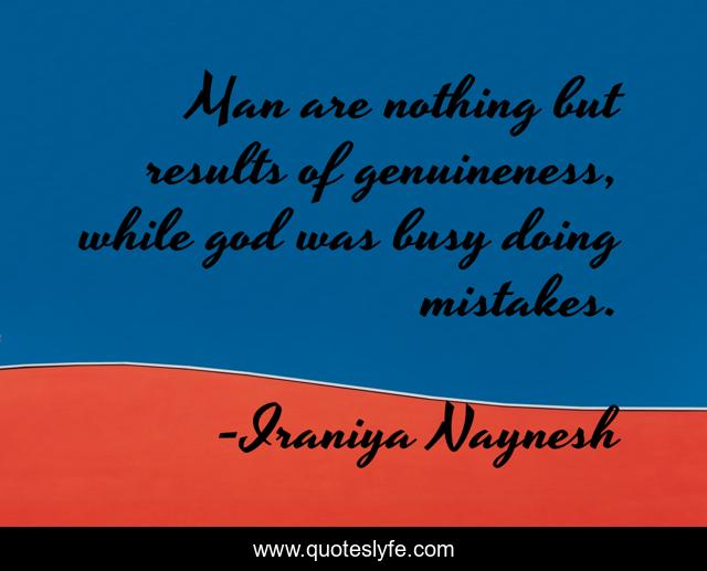 This page presents the quote "Man are nothing but results of genuineness, while god was busy doing mistakes.". Author of this quote is Iraniya Naynesh. This quote is about god, mankind,.