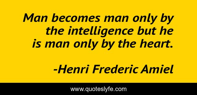 This page presents the quote "Man becomes man only by the intelligence but he is man only by the heart.". Author of this quote is Henri Frederic Amiel. This quote is about heart, passion,.