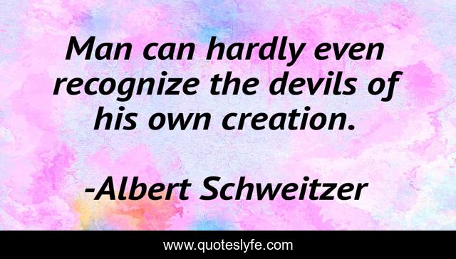 This page presents the quote "Man can hardly even recognize the devils of his own creation.". Author of this quote is Albert Schweitzer. This quote is about hell, devil,.