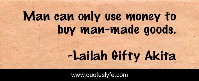 This page presents the quote "Man can only use money to buy man-made goods.". Author of this quote is Lailah Gifty Akita. This quote is about money, wise-words, buy, goods,.
