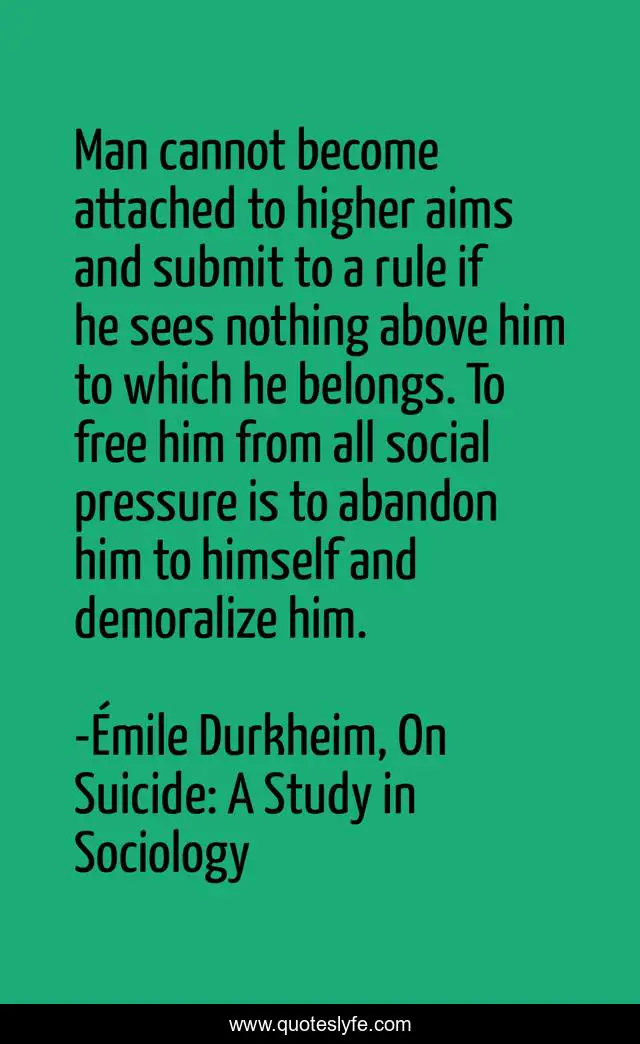 "Émile Durkheim, On Suicide: A Study in Sociology Quotes." Quoteslyfe.com, 2025. Fri. 05 Dec. 2025. <https://www.quoteslyfe.com/quote/Man-cannot-become-attached-to-higher-aims-54479>.