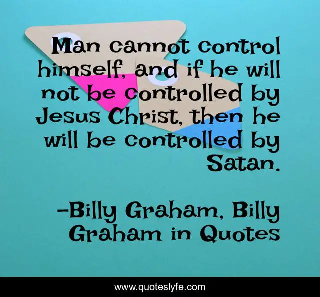 This page presents the quote "Man cannot control himself, and if he will not be controlled by Jesus Christ, then he will be controlled by Satan.". Author of this quote is Billy Graham, Billy Graham in Quotes. This quote is about devil, satan, billy-graham,.
