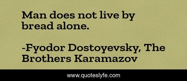 "Fyodor Dostoyevsky, The Brothers Karamazov Quotes." Quoteslyfe.com, 2025. Fri. 05 Dec. 2025. <https://www.quoteslyfe.com/quote/Man-does-not-live-by-bread-alone-54819>.