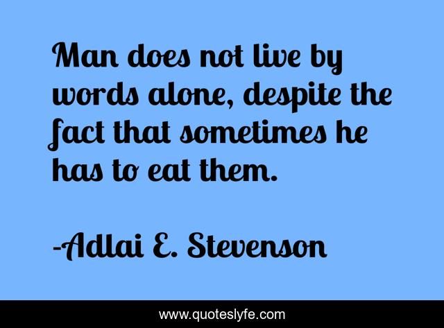 This page presents the quote "Man does not live by words alone, despite the fact that sometimes he has to eat them.". Author of this quote is Adlai E. Stevenson. This quote is about live, words, man,.