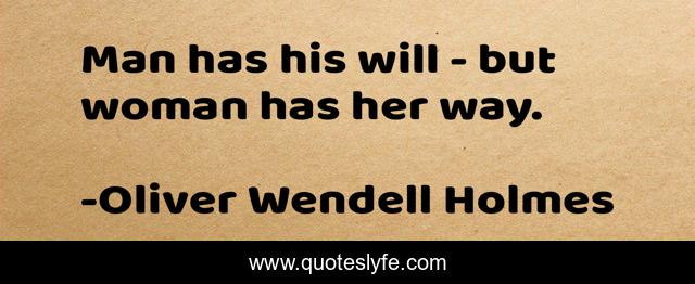 "Oliver Wendell Holmes Quotes." Quoteslyfe.com, 2025. Fri. 05 Dec. 2025. <https://www.quoteslyfe.com/quote/Man-has-his-will-but-woman-has-278889>.