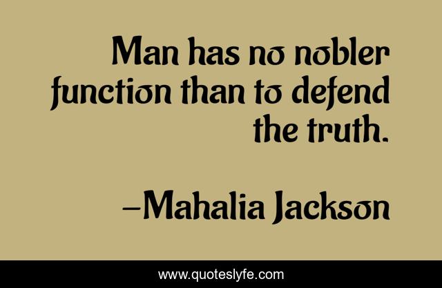 This page presents the quote "Man has no nobler function than to defend the truth.". Author of this quote is Mahalia Jackson. .