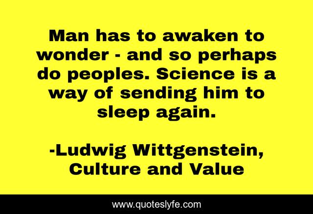 This page presents the quote "Man has to awaken to wonder - and so perhaps do peoples. Science is a way of sending him to sleep again.". Author of this quote is Ludwig Wittgenstein, Culture and Value. This quote is about science, scientism, dogmatism, wonder,.