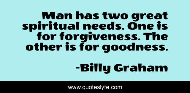 This page presents the quote "Man has two great spiritual needs. One is for forgiveness. The other is for goodness.". Author of this quote is Billy Graham. This quote is about great, spiritual, man,.