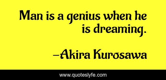 This page presents the quote "Man is a genius when he is dreaming.". Author of this quote is Akira Kurosawa. This quote is about intelligence, dreaming, sleep, dreams, man,.
