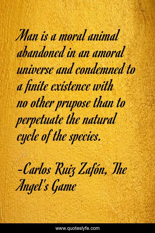 "Carlos Ruiz Zafón, The Angel's Game Quotes." Quoteslyfe.com, 2025. Fri. 05 Dec. 2025. <https://www.quoteslyfe.com/quote/Man-is-a-moral-animal-abandoned-in-162361>.
