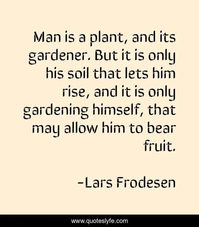 "Lars Frodesen Quotes." Quoteslyfe.com, 2025. Fri. 05 Dec. 2025. <https://www.quoteslyfe.com/quote/Man-is-a-plant-and-its-gardener-175217>.