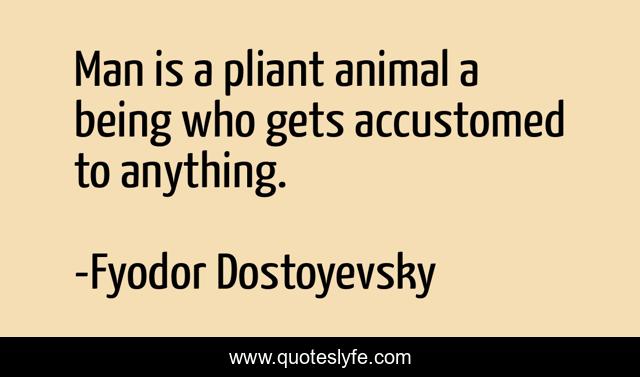 This page presents the quote "Man is a pliant animal a being who gets accustomed to anything.". Author of this quote is Fyodor Dostoyevsky. .