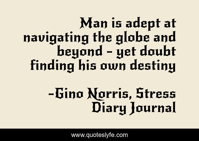 This page presents the quote "Man is adept at navigating the globe and beyond - yet doubt finding his own destiny". Author of this quote is Gino Norris, Stress Diary Journal. This quote is about perseverance, destiny, focus, stress-diary, gino-norris, progress, goal-setting,.