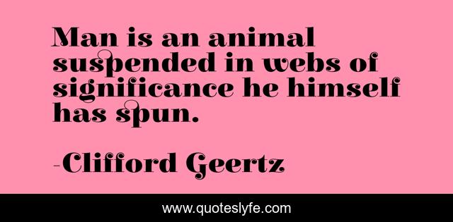 This page presents the quote "Man is an animal suspended in webs of significance he himself has spun.". Author of this quote is Clifford Geertz. .