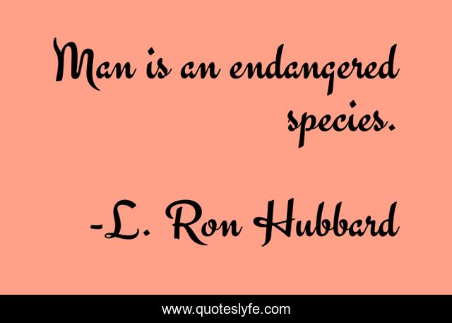 This page presents the quote "Man is an endangered species.". Author of this quote is L. Ron Hubbard. This quote is about humor, sci-fi,.