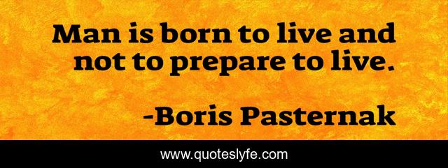 This page presents the quote "Man is born to live and not to prepare to live.". Author of this quote is Boris Pasternak. This quote is about live, prepare, man,.