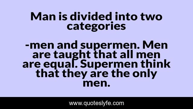 "men and supermen. Men are taught that all men are equal. Supermen think that they are the only men. Quotes." Quoteslyfe.com, 2025. Fri. 05 Dec. 2025. <https://www.quoteslyfe.com/quote/Man-is-divided-into-two-categories-162510>.