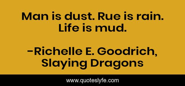 This page presents the quote "Man is dust. Rue is rain. Life is mud.". Author of this quote is Richelle E. Goodrich, Slaying Dragons. This quote is about life, life-is-hard, life-experience, richelle-e-goodrich, richelle, mankind, richelle-goodrich, humanity,.