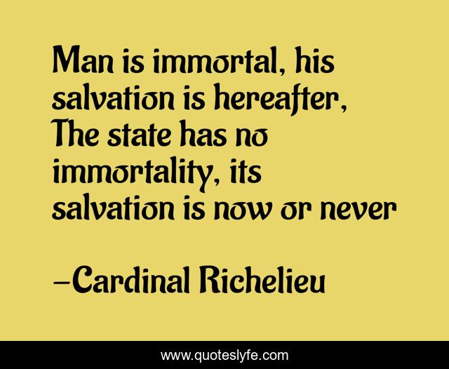 "Cardinal Richelieu Quotes." Quoteslyfe.com, 2025. Mon. 08 Dec. 2025. <https://www.quoteslyfe.com/quote/Man-is-immortal-his-salvation-is-hereafter-240670>.