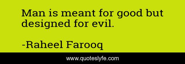 "Raheel Farooq Quotes." Quoteslyfe.com, 2025. Sat. 06 Dec. 2025. <https://www.quoteslyfe.com/quote/Man-is-meant-for-good-but-designed-162600>.