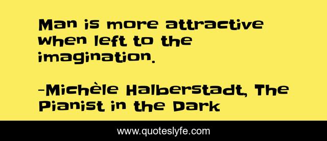 This page presents the quote "Man is more attractive when left to the imagination.". Author of this quote is Michèle Halberstadt, The Pianist in the Dark. .