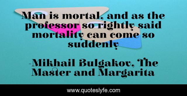 This page presents the quote "Man is mortal, and as the professor so rightly said mortality can come so suddenly". Author of this quote is Mikhail Bulgakov, The Master and Margarita. This quote is about mortality, man,.