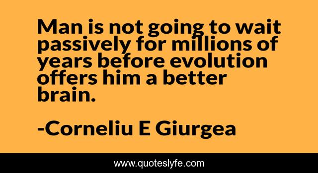 This page presents the quote "Man is not going to wait passively for millions of years before evolution offers him a better brain.". Author of this quote is Corneliu E Giurgea. This quote is about brain, human-being, self-development,.