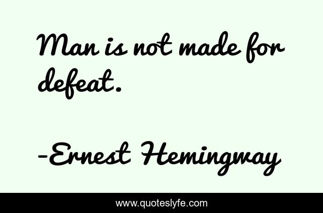 "Ernest Hemingway Quotes." Quoteslyfe.com, 2025. Fri. 05 Dec. 2025. <https://www.quoteslyfe.com/quote/Man-is-not-made-for-defeat-286217>.