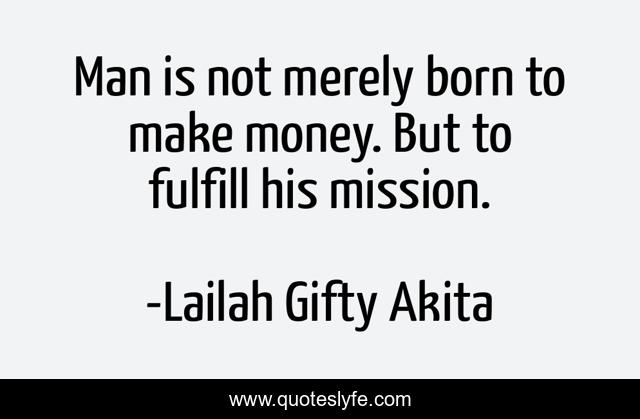 This page presents the quote "Man is not merely born to make money. But to fulfill his mission.". Author of this quote is Lailah Gifty Akita. This quote is about birth, money, mission, encouragement, inspirational, enthusiasm, humanity, man,.