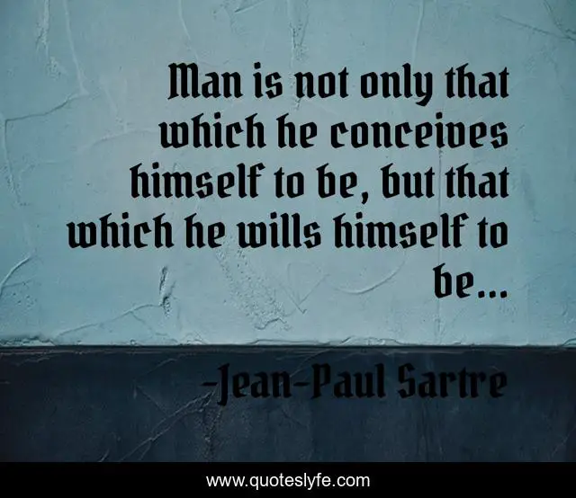 This page presents the quote "Man is not only that which he conceives himself to be, but that which he wills himself to be...". Author of this quote is Jean-Paul Sartre. .
