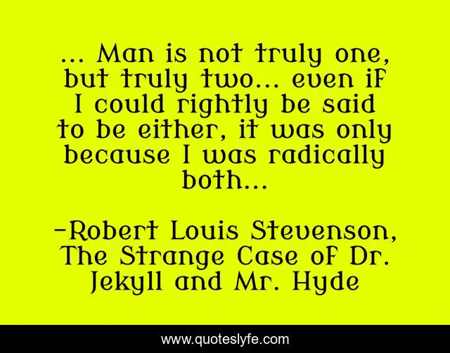 "Robert Louis Stevenson, The Strange Case of Dr. Jekyll and Mr. Hyde Quotes." Quoteslyfe.com, 2025. Sun. 07 Dec. 2025. <https://www.quoteslyfe.com/quote/Man-is-not-truly-one-but-truly-63307>.