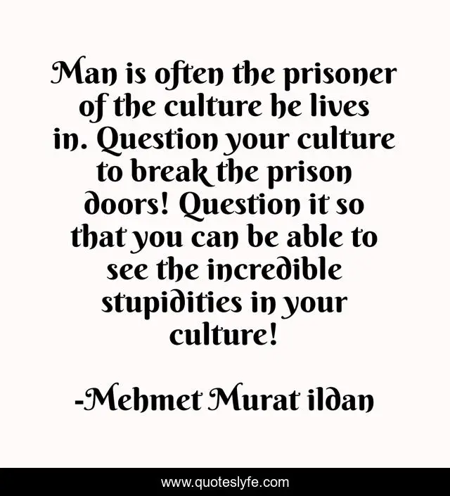 This page presents the quote "Man is often the prisoner of the culture he lives in. Question your culture to break the prison doors! Question it so that you can be able to see the incredible stupidities in your culture!". Author of this quote is Mehmet Murat ildan. .