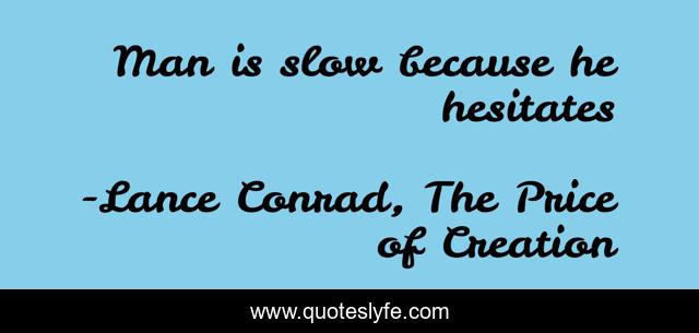 "Lance Conrad, The Price of Creation Quotes." Quoteslyfe.com, 2025. Sat. 06 Dec. 2025. <https://www.quoteslyfe.com/quote/Man-is-slow-because-he-hesitates-157971>.