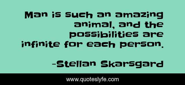 This page presents the quote "Man is such an amazing animal, and the possibilities are infinite for each person.". Author of this quote is Stellan Skarsgard. This quote is about person, animal, man,.