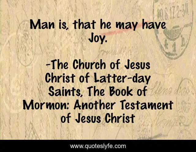 "The Church of Jesus Christ of Latter-day Saints, The Book of Mormon: Another Testament of Jesus Christ Quotes." Quoteslyfe.com, 2025. Sat. 06 Dec. 2025. <https://www.quoteslyfe.com/quote/Man-is-that-he-may-have-Joy-5065>.
