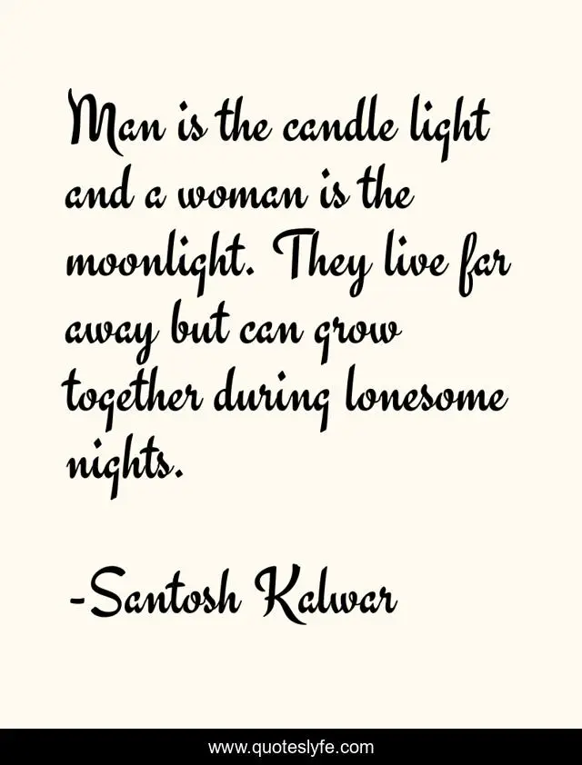 This page presents the quote "Man is the candle light and a woman is the moonlight. They live far away but can grow together during lonesome nights.". Author of this quote is Santosh Kalwar. This quote is about romance, love, affection,.