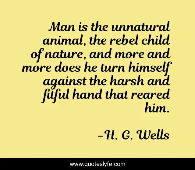 "H. G. Wells Quotes." Quoteslyfe.com, 2025. Fri. 05 Dec. 2025. <https://www.quoteslyfe.com/quote/Man-is-the-unnatural-animal-the-rebel-292498>.