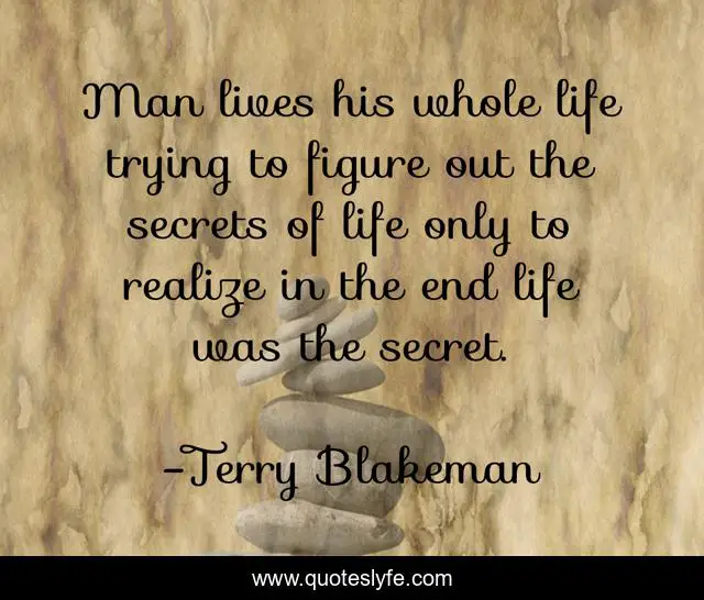This page presents the quote "Man lives his whole life trying to figure out the secrets of life only to realize in the end life was the secret.". Author of this quote is Terry Blakeman. .