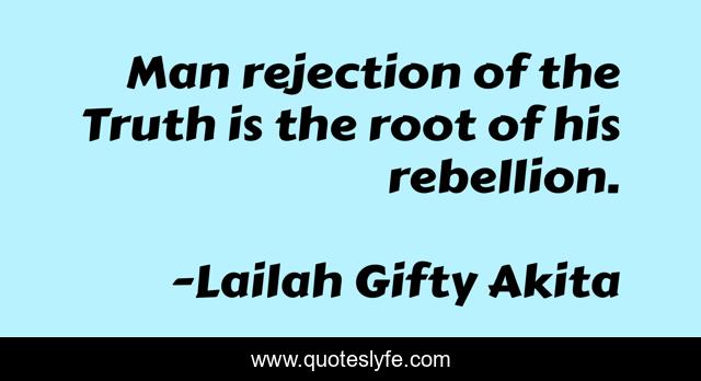 This page presents the quote "Man rejection of the Truth is the root of his rebellion.". Author of this quote is Lailah Gifty Akita. This quote is about wise-words, education, rejection, truth, holy-writings, rebellion, words, life-philosophy, christianity,.