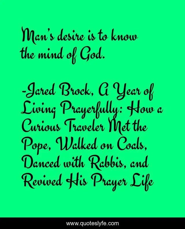 "Jared Brock, A Year of Living Prayerfully: How a Curious Traveler Met the Pope, Walked on Coals, Danced with Rabbis, and Revived His Prayer Life Quotes." Quoteslyfe.com, 2025. Sun. 07 Dec. 2025. <https://www.quoteslyfe.com/quote/Man-s-desire-is-to-know-the-142378>.