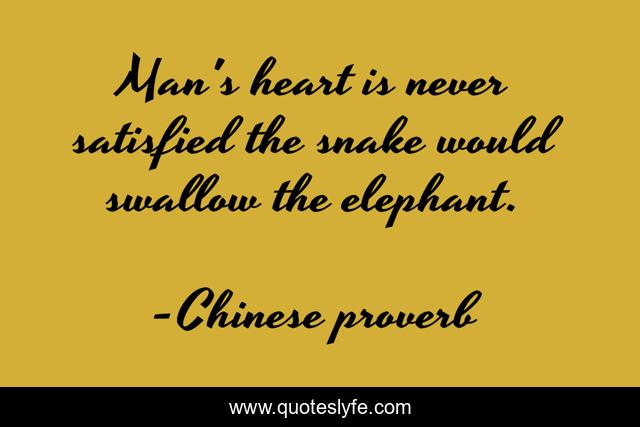This page presents the quote "Man's heart is never satisfied the snake would swallow the elephant.". Author of this quote is Chinese proverb. .