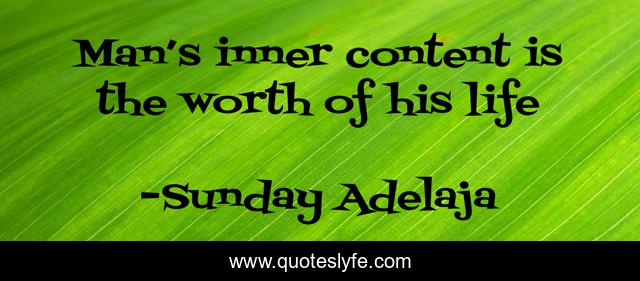 This page presents the quote "Man’s inner content is the worth of his life". Author of this quote is Sunday Adelaja. This quote is about love, people, money, principles, employment, worship, jobless, service, god,.