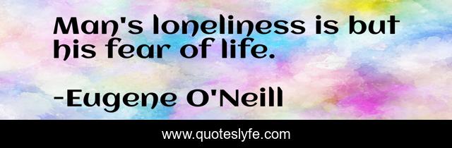 This page presents the quote "Man's loneliness is but his fear of life.". Author of this quote is Eugene O'Neill. .